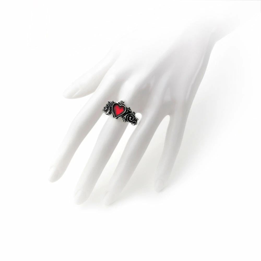 A miniature, rococo masterpiece of romantic metaphor, with the blood red enameled heart of passion. Made in England
