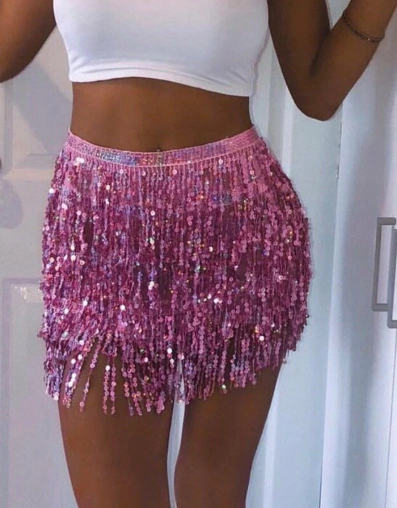 Apple Accessories Belly Dance Sequin Tassel Wrap Skirt