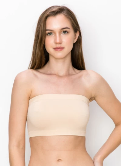 The strapless tube top style bra is great under costumes or by itself. The soft and stretchy microfiber fabric is 92% nylon and 8% Spandex and available in one size. Does not include bra pads.
