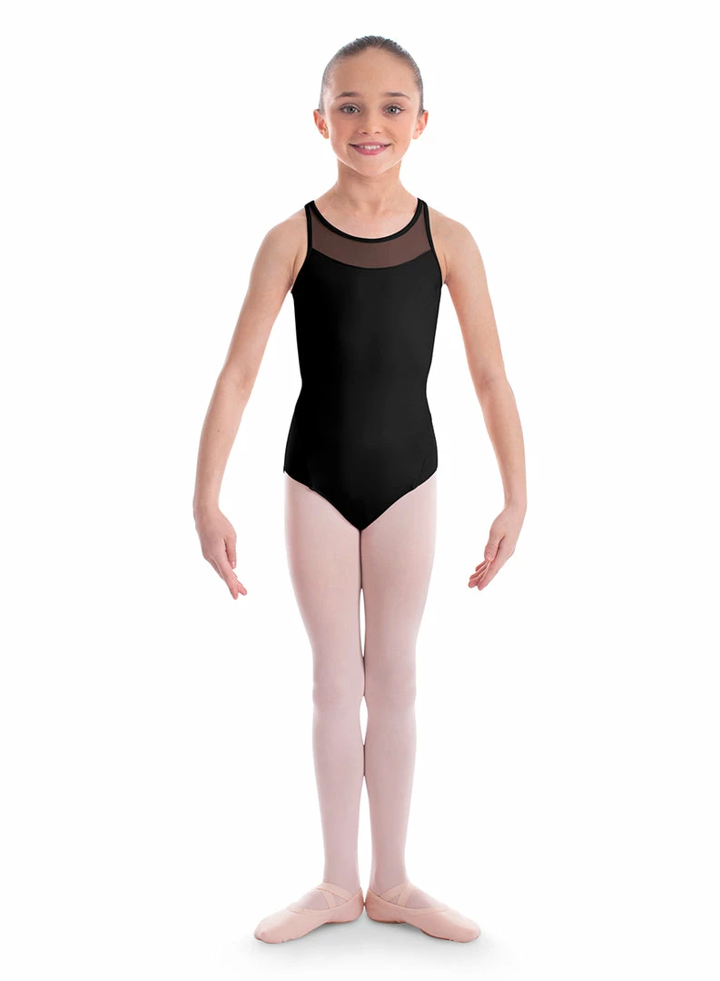 The beautiful embroidered tank leotard by Bloch is an elegant and classic style for any dance class. The front mesh accent offers an edge up to a classic style and the racer back ensures that the straps won’t fall off the shoulders. The back offers an interesting back feature with mesh and embroidery. Regular Price $34.95