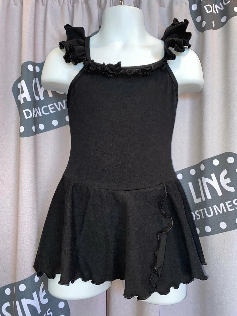 This is the perfect dance dress for class in comfy organic cotton. Showcasing a ruffled flutter sleeve which continues to a criss cross back/ x back, your little dancer will love twirling about with the attached cotton skirt with ruffle edge. Regular Price $34.95