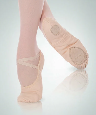 These split sole ballet flats made with totalSTRETCH canvas are machine washable and anti-microbial. Anatomically curved for the left and right foot for clean lines and a better fit. Foam cushion lining and spongy cotton heel insole for extra support. Features pre-sewn elastics and adjustable elastic drawstring.