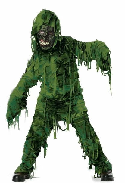Yikes, this creature just emerged from the Swamp and wants to drag you down too! Each three-piece Boy’s Costume set comes with a long-sleeved shirt and pants, both dyed a fog-like green and gray print. Shreds of cloth cover them to make it seem like you just clawed your way up from the swamp.