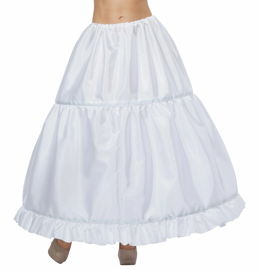 Finally a black hoop skirt is available for your darker ball gowns. The hoop diameter measures 48″ and has 3 hoops for a full effect. The elastic waist fits most waists and can be rolled at the waist if it is too long. Intended for adults and tall kids.