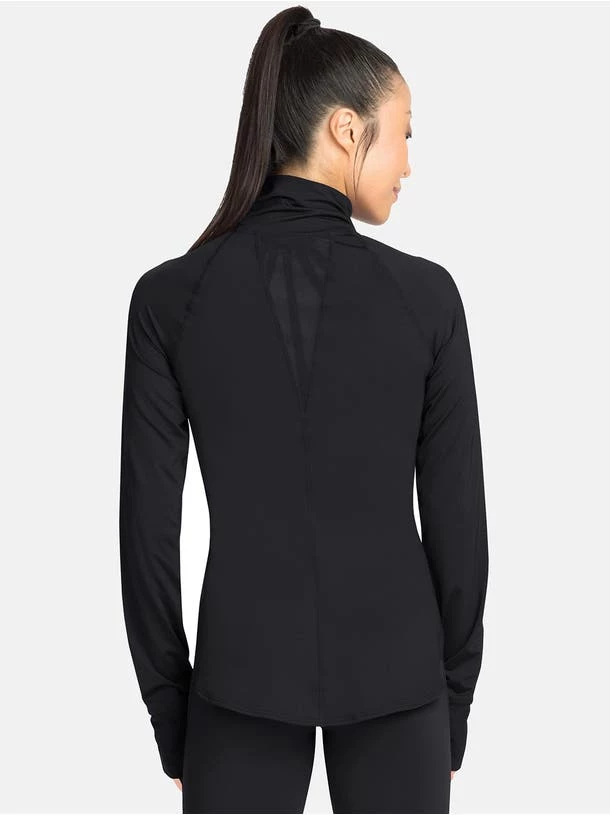 Rejuvenate your workout in the Renewal Warm Up Jacket. Highlights include interior lining, thumbholes, welt pockets and a high funnel neck for added warmth and security. The Germanium infused fabric regulates positive and negative ions which can help to reduce muscle fatigue. Back mesh triangle detail and a front zipper adds a slight edge to your active wear.