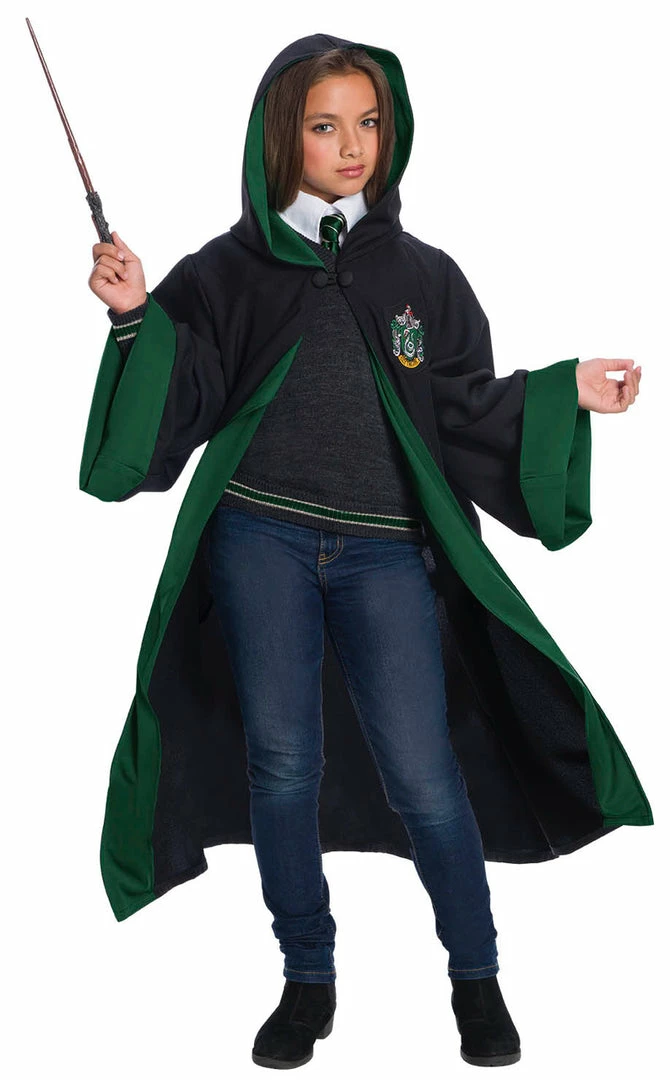Now you can live in Hogwarts with your very own Slytherin Student Robe Costume. You can be Draco Malfoy or any of the cast of characters in Slytherin’s House. The deluxe hooded robe is trimmed in Slytherin green with an embroidered house crest and a wand pocket. The sweater also has an embroidered house crest on the chest. So get ready for all of your wizarding classes! Wand sold separately.