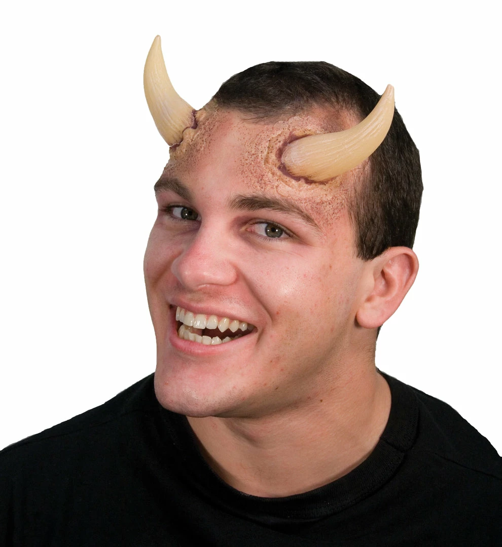 Lightweight red-colored latex appliances combine large ridged horns with gruesome torn “flesh,” giving the look of horns breaking through skin. Includes 2 horns.