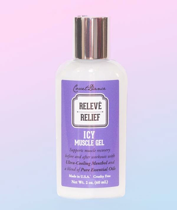 NEW IMPROVED! Perfect remedy for sore muscles after a hard day at dance. This muscle gel is loaded with ultra-cooling Menthol and a special blend of Pure Essential Oils. It is specifically formulated to relieve tight muscles with a cool, refreshing sensation while hydrating and moisturizing your skin. This gel glides on smooth and within seconds you can feel the cooling action soothing and refreshing your muscles.