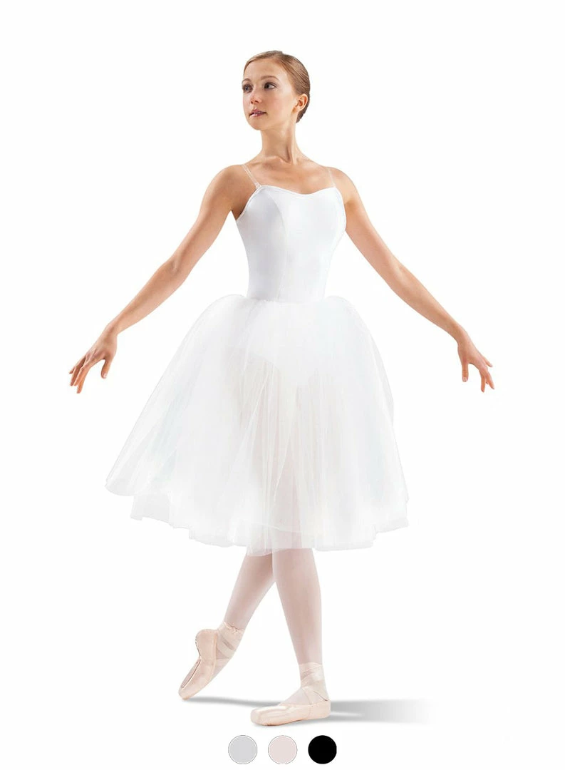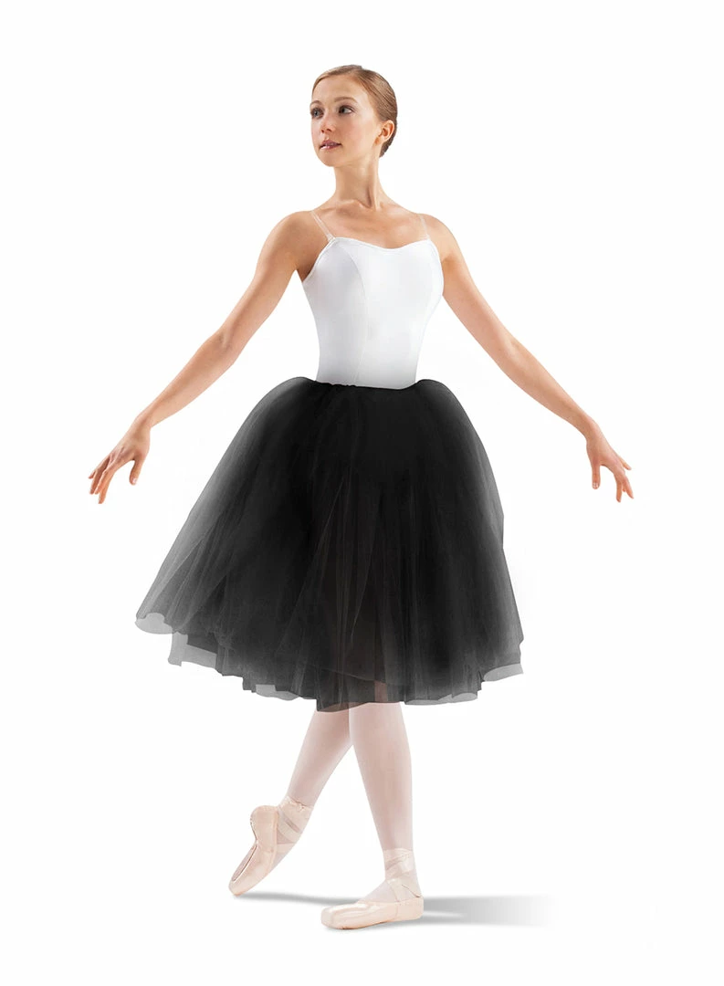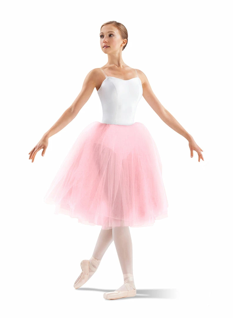 This romantic length Juliet skirt reaches below the knee and features 3 soft layers of polyester tulle. Designed with movement in mind, the soft tulle drifts as you glide across the stage.