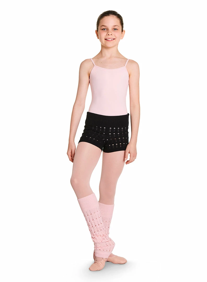 Make a chic transition from studio to street in these shorts. Features a luxurious, soft knitted roll waist, as well as trendy textured knit design. Perfect for layering over your leotard and tights for comfortable coverage and warmth during the cooler months.