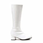 Be a dancing queen in these fabulous Go-Go Boots! These groovy white go-go boots feature a glossy finish with a thick block heel for extra comfort. The side zipper makes it easy to slip these disco costume boots on and off. Every 60’s or 70’s costume needs these fabulous go-go boots!