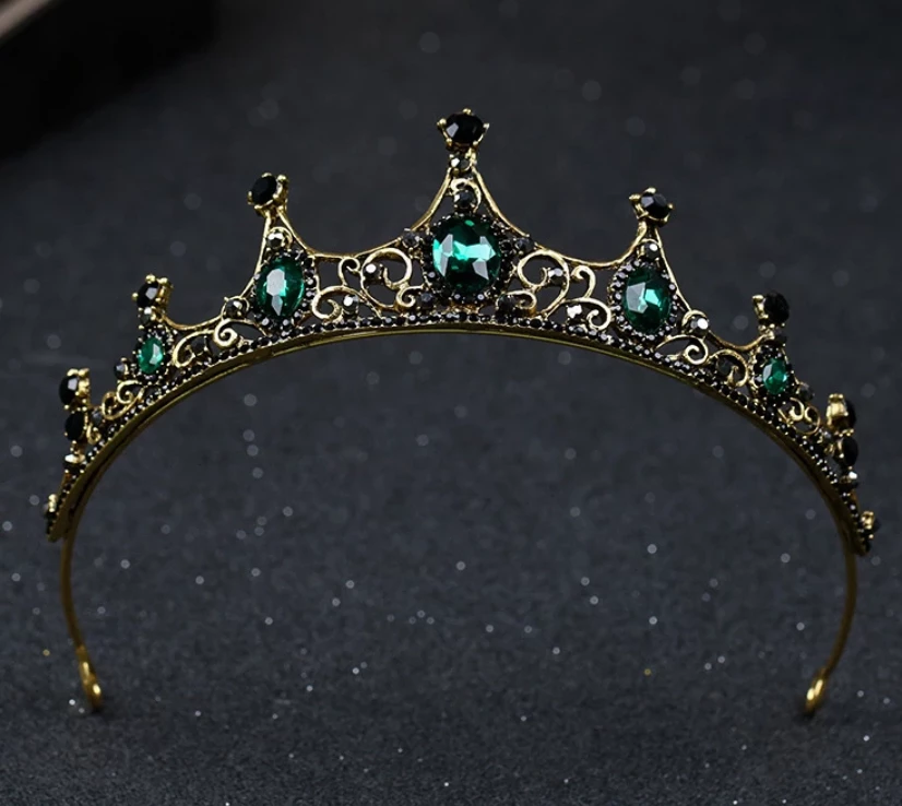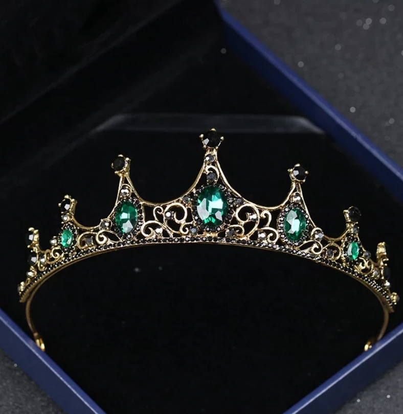 Become a member of the landed aristocracy, or bathe in the limelight at your next Renaissance Faire soire with the Antiqued Gold Crown. Featuring an intricate gold scroll design with regal points. Choose your color jewel accent: black, red or green. Perfect for dark royalty too!