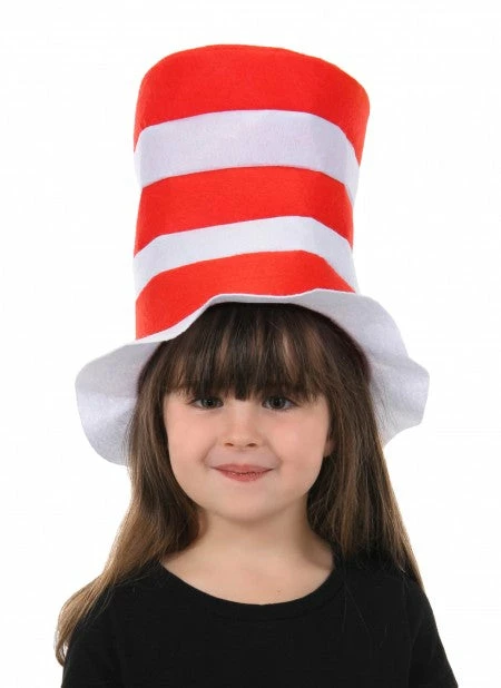 Supply your little one with fun on rainy days with this Cat in the Hat Kids Felt Stovepipe Hat. Inspired by the Cat in the Hat, and the special rainy day mischief of Dr. Seuss, this hat features the iconic red and white striped pattern constructed out of high-quality felt. For added fun, you can stuff the crown with fluff to help it stand up to any playtime challenge your little one throws at it. Whether they want a larger Cat in the Hat Costume, or an everyday dress-up hat, this Dr. Seuss Cat in the Hat Kids Felt Stovepipe is sure to help your child take fun out of the box. Also available in adult sizes.