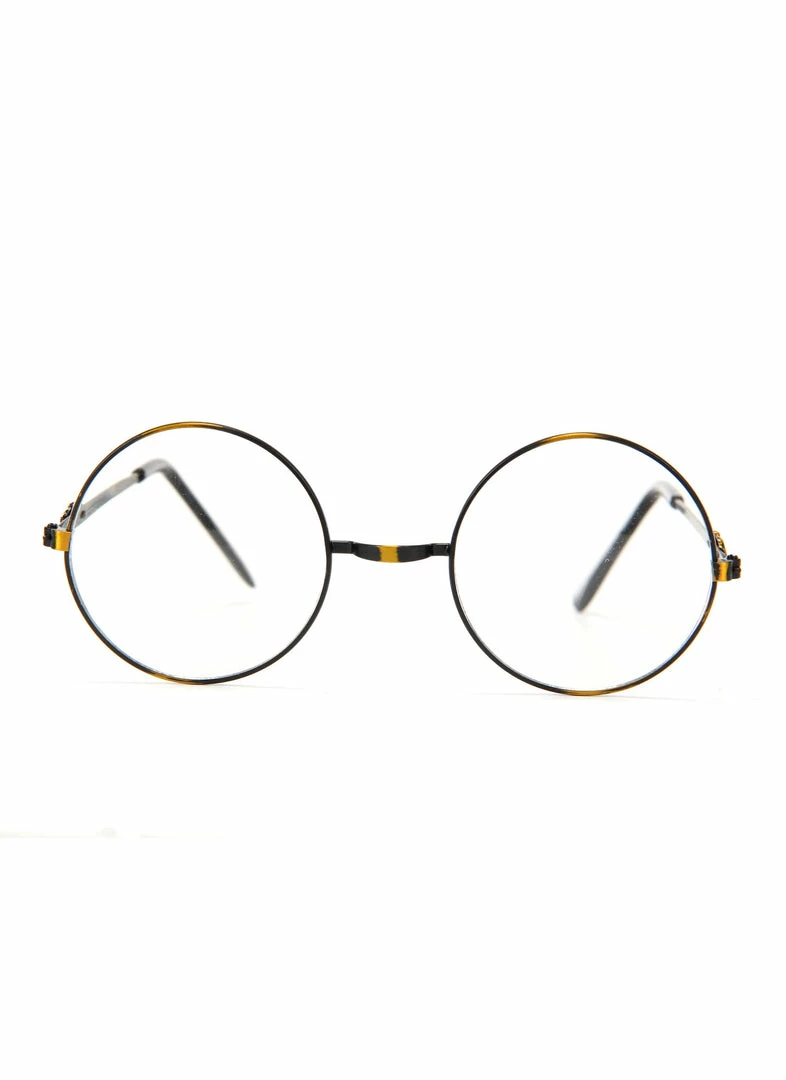 The perfect accessory for boarding the HOGWARTS EXPRESS. Round, burnished metal wire framed glasses just like the glasses of our favorite wizard.