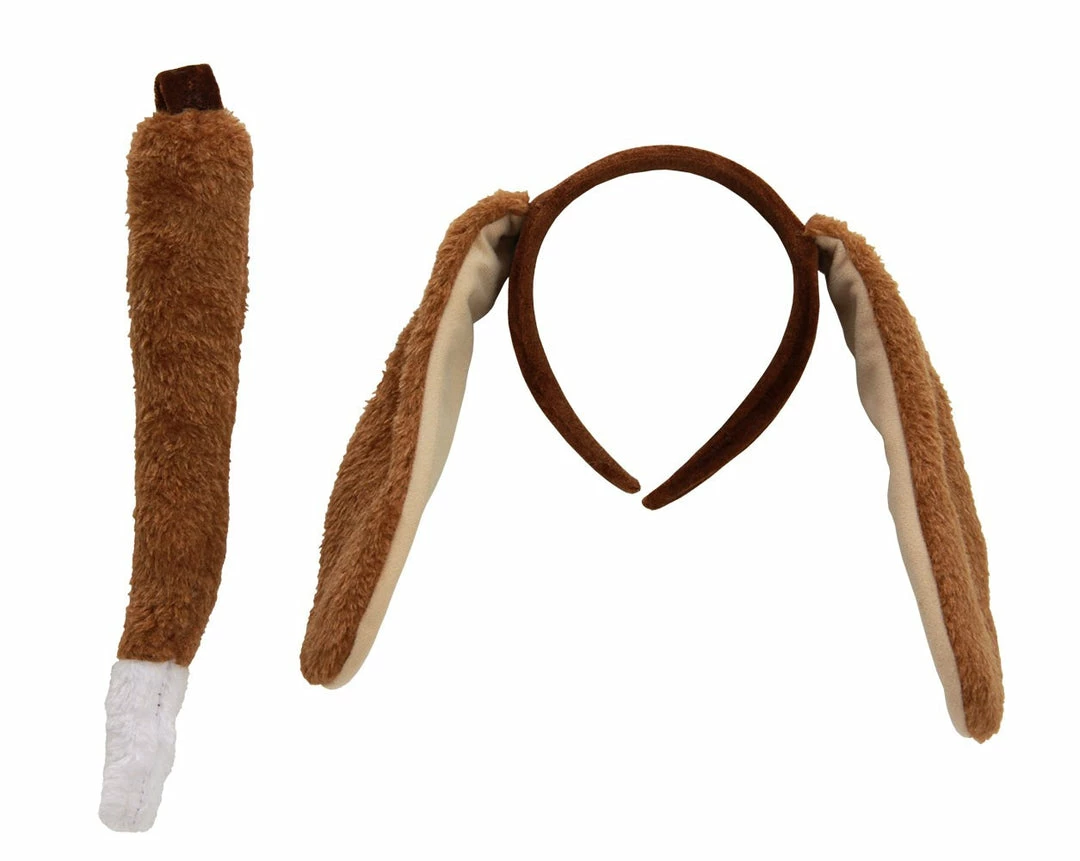 Come. Sit. Fetch one of these adorable Puppy Costume Kits by elope. Soft, floofy, floppy brown faux fur ears droop down from a comfortable covered headband. The plush brown faux fur tail features a wag-worthy white tip and an easy-to-wear Velcro belt loop attachment that allows you to pair this accessory set with your other outfit items to complete your doggo dream costume. Designed to fit pup lovers and cute canine cosplayers of all sizes, this costume kit makes a great addition to your whimsical wardrobe or novelty dress-up collection. Get ready for a woof-ing good time when you wear this Doggie Ears & Tail Kit by elope.Includes: