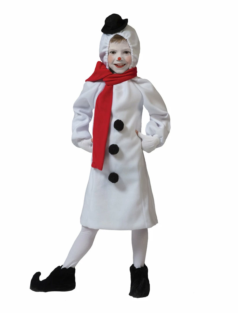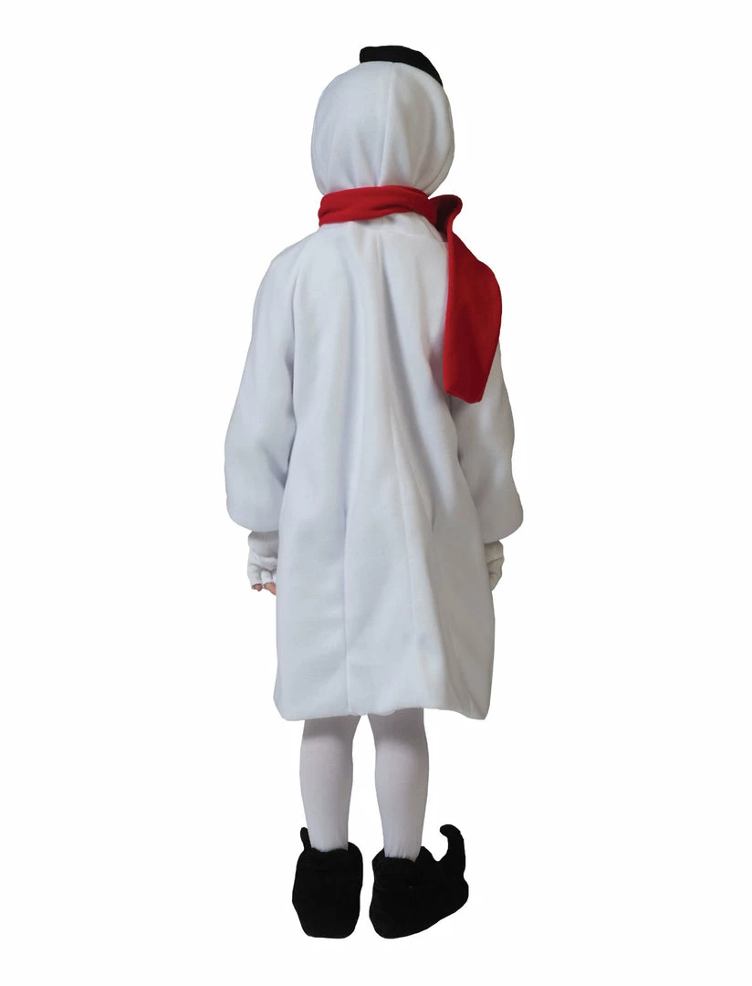 Get cozy with this snow white hooded fleece tunic with black pom poms, red scarf and attached hat.