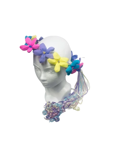 Our Multicolor Paper Flower Crown is one of our most popular items for Fiesta and Cinco de Mayo parties. This flower crown is decorated with our beautiful paper terecitas flowers and has colorful curled ribbon tails. You can also use it as a small wreath to decorate your event or wear it to celebrate any fiesta. Available in multicolor, pastel, or pink/white and fits children and adults. Handmade in Mexico.