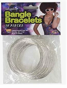 Silver Bangle Bracelets come in a pack of 50 and are so versatile. Use them for pirate, 80’s, 70’s Disco, and many cultural costumes.