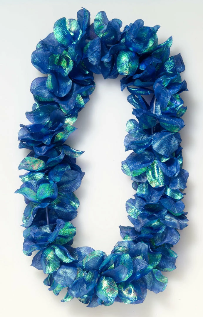 Try something new and different for your tropical themed party, the pearlized floral lei in blue. The thick floral lei has blue nylon flowers that give a hint of opalescence because everyone needs a little shimmer in their lives.