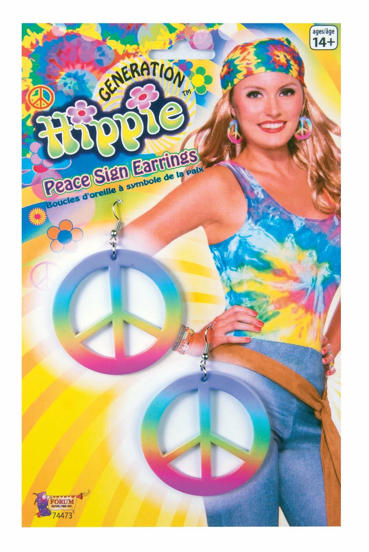 Get your groove on with these psychedelic peace sign earrings! Bring the signature symbol of the era into your outfit with this lightweight jewelry.