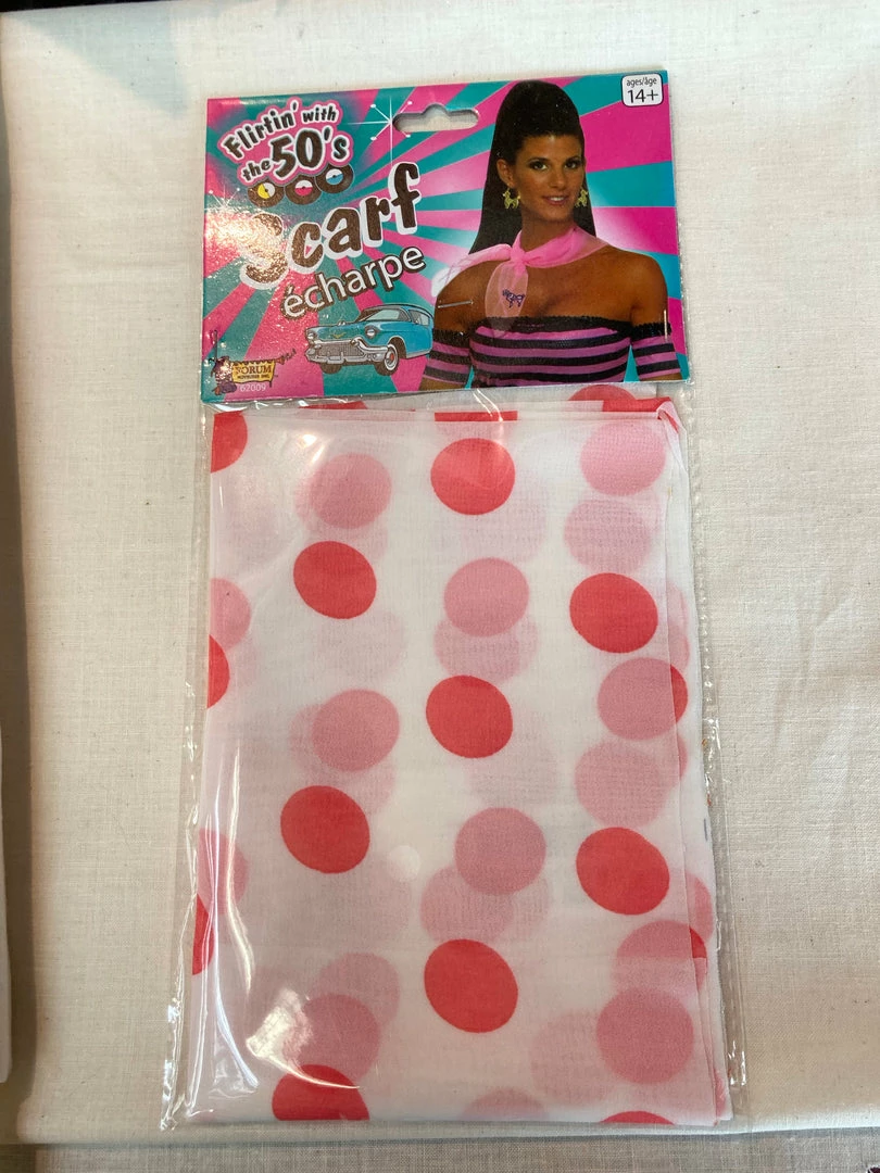 Get ready for your sock hop because this polka dot scarf is a great accessory to classic mid-century outfits!