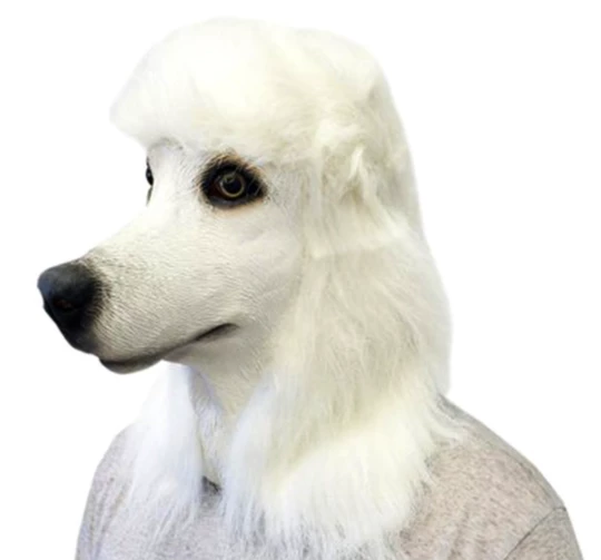 The Latex Poodle Mask is a full over the head mask in white with fur accents.