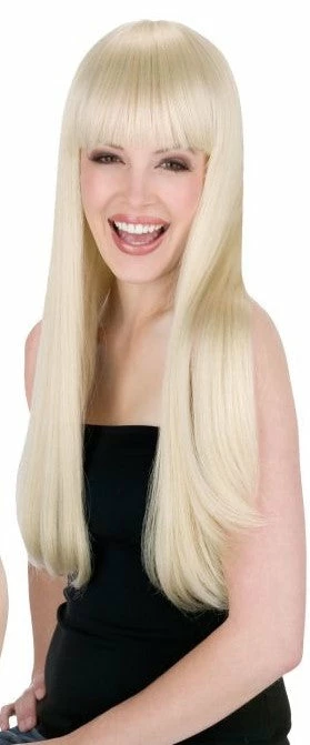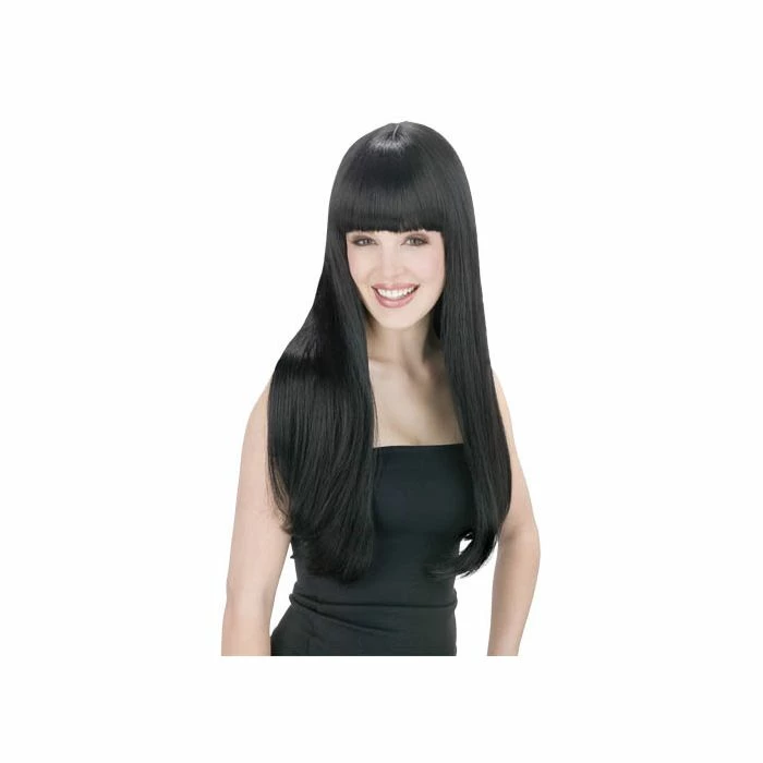 This soft wig has long and straight hair with full bangs. Most commonly used for Cher costumes or cosplay characters.