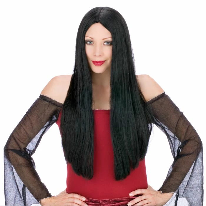 The Long & Lovely Black wig is a great economical option most commonly used in Morticia or Cher costumes. It’s also great for cosplay, dark witches, or even The Grudge!