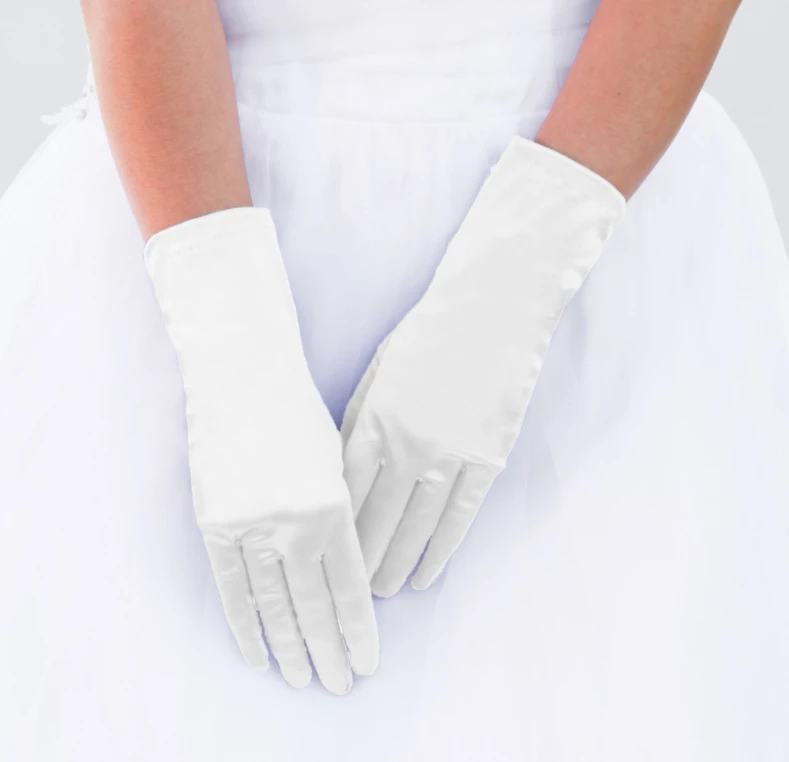 The satin wrist length gloves are a silky and elegant addition to any costume. The spandex stretch glove is offered in different sizes. Also available in child sizes.