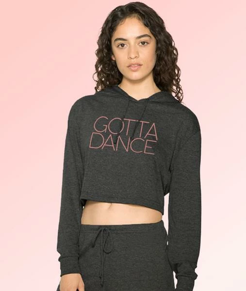 Dancers just gotta dance. Don’t miss out on this lightweight black crop hoodie. They will sell out quickly. The GOTTA DANCE imprint is on trend with a subtle, light pink printed on a washed black version of this tri-blend hoodie.Â