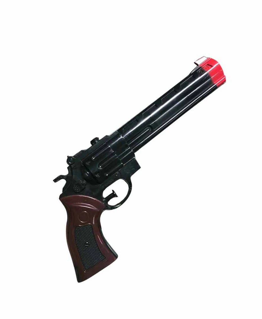 This plastic pirate gun has a brown handle and a long barrel with a classic red tip for safety purposes. Measures 11″ long.  Perfect for Cowboys and Police in theatre or for a costume. For prop use only.