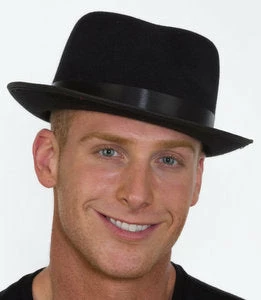 This classic black razor hat has a tall crown and narrow brim. This felt hat with a satin band is great for a variety of costumes.