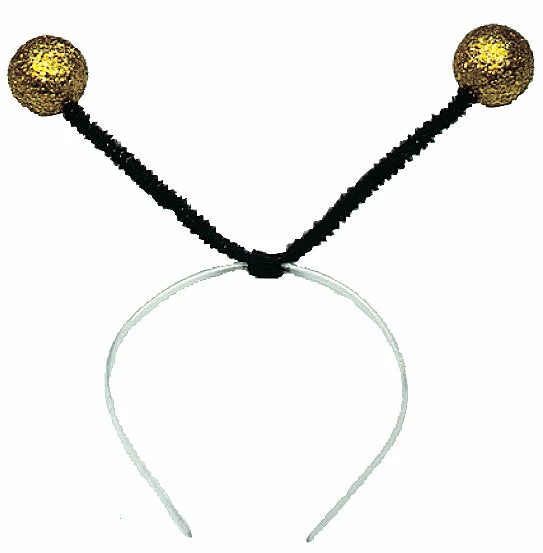 Everyone needs a pair of gold dingle boppers for their bee costume! The bee antennae are on an easy to wear headband with gold glittered balls at the end so they move when you move.