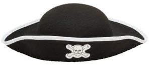 The felt pirate hat is an economical option for your pirate costume. The pirate hat has white binding with the Jolly Roger Skull and Crossbones on the front of the hat. Available in one size.