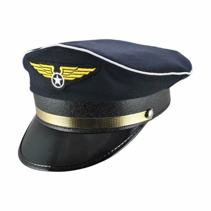 Navy blue pilot hat with aviator wings emblem on the front and black bill. Perfect topper for your pilot or flight attendant costume! The hat rise is 3.5″ and the front bill measures 2.5″. One size fits most, plastic tab back makes this hat adjustable.