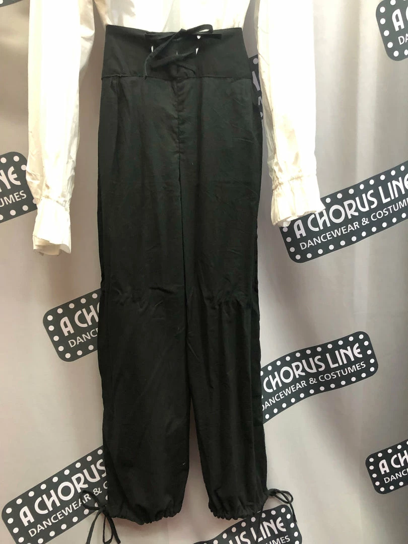 The historic style lightweight cotton blend pants have a button fly and a lace up back for a snug fitted waist. There are ties at the ankles for a blousy look on the leg. Available in black and brown and also available in a shorter knicker style. Perfect for many historic characters especially pirates, renaissance, peasants, muskateers, and colonial.