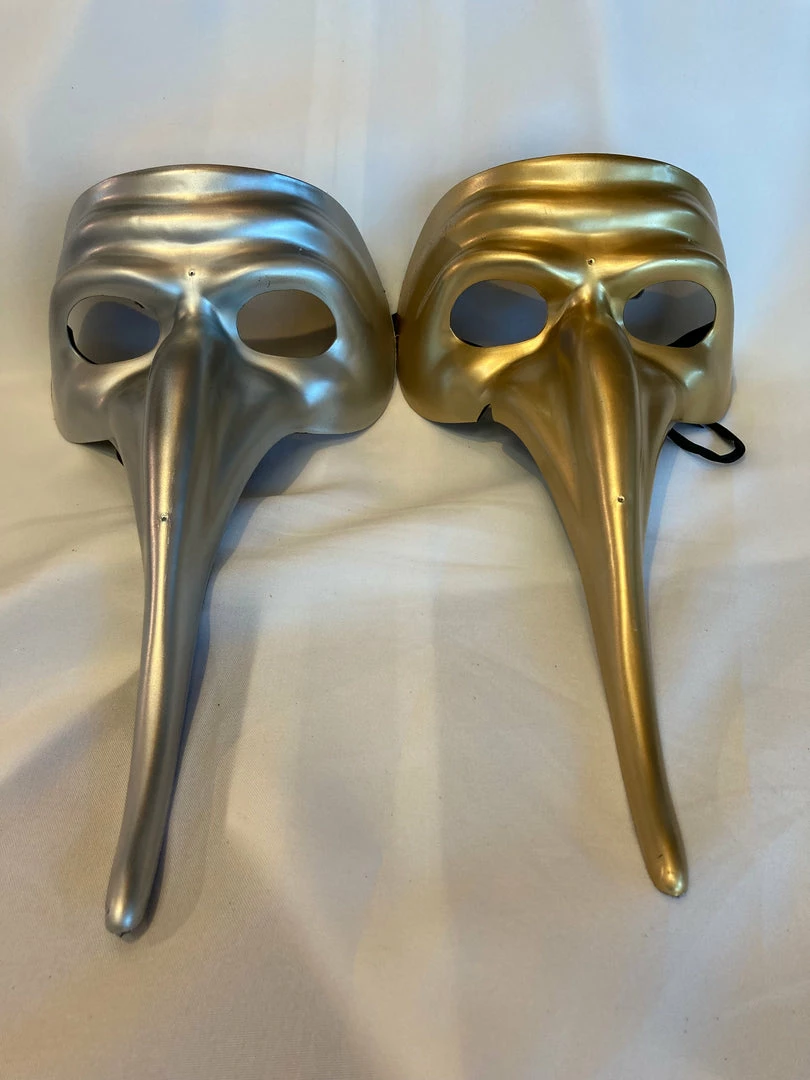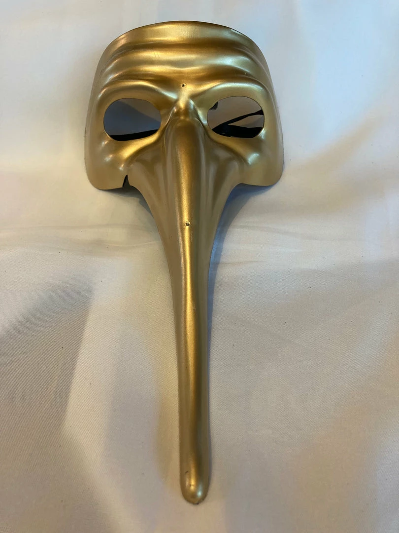 The traditional long nosed style mask was made popular in Venice and is known as Scaramouche. This economical plastic option has a back strap to fit nicely on the face. Made in China.