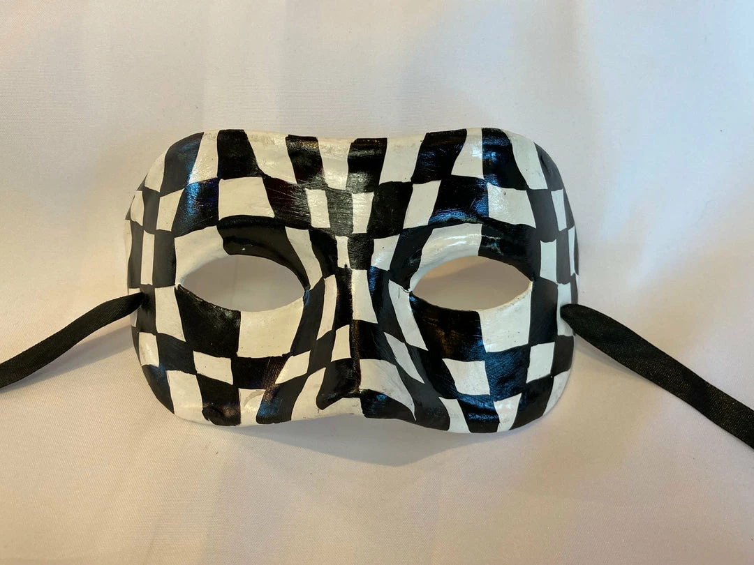 The abstract paper mache’ Mania Eyemask is a chaotic and edgy style. The eye mask has a slightly larger frame.