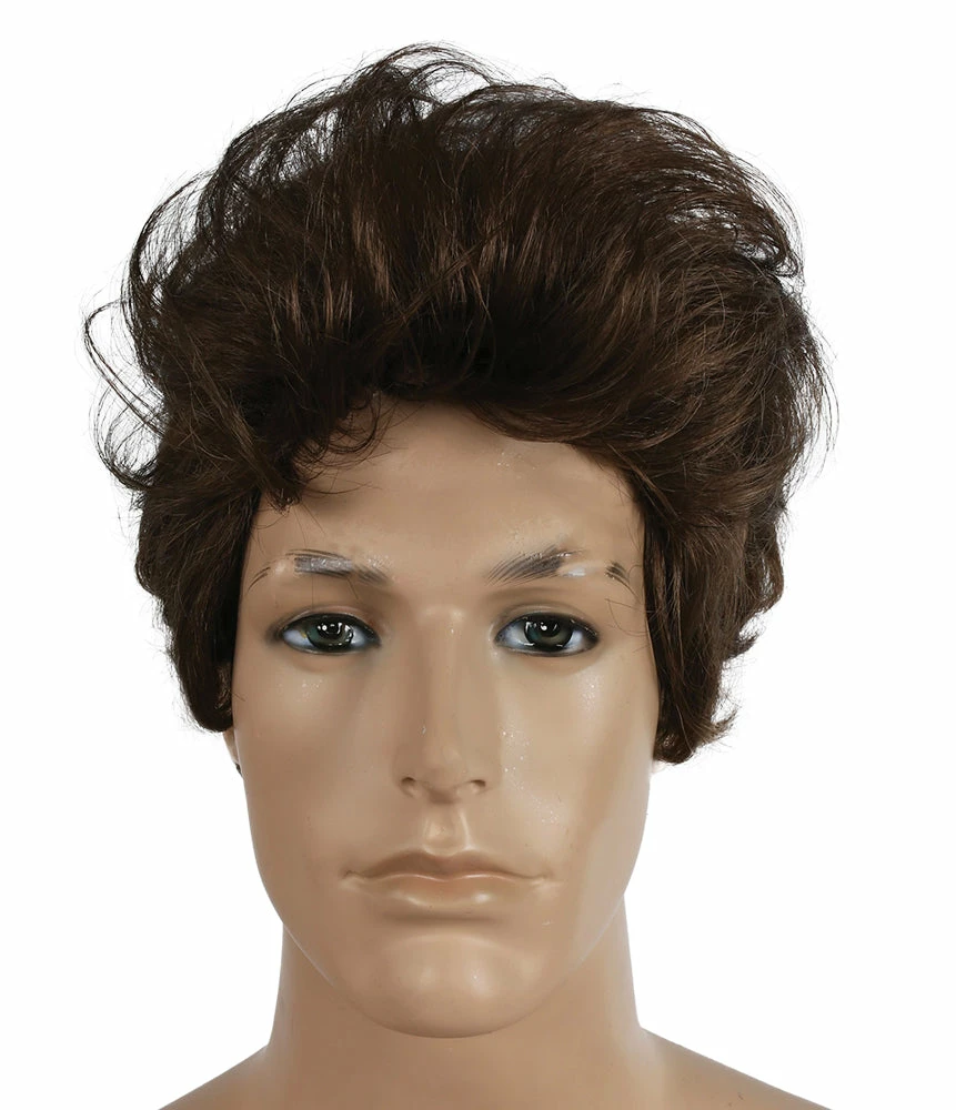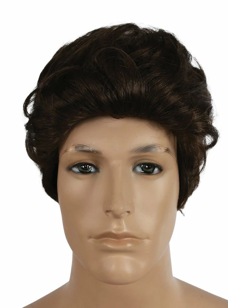 The Men’s CB Wig is a full top short hair wig that looks slicked back but can easily be styled with additional fullness as shown. The slicked back look is a great 1920’s to 1940’s style.