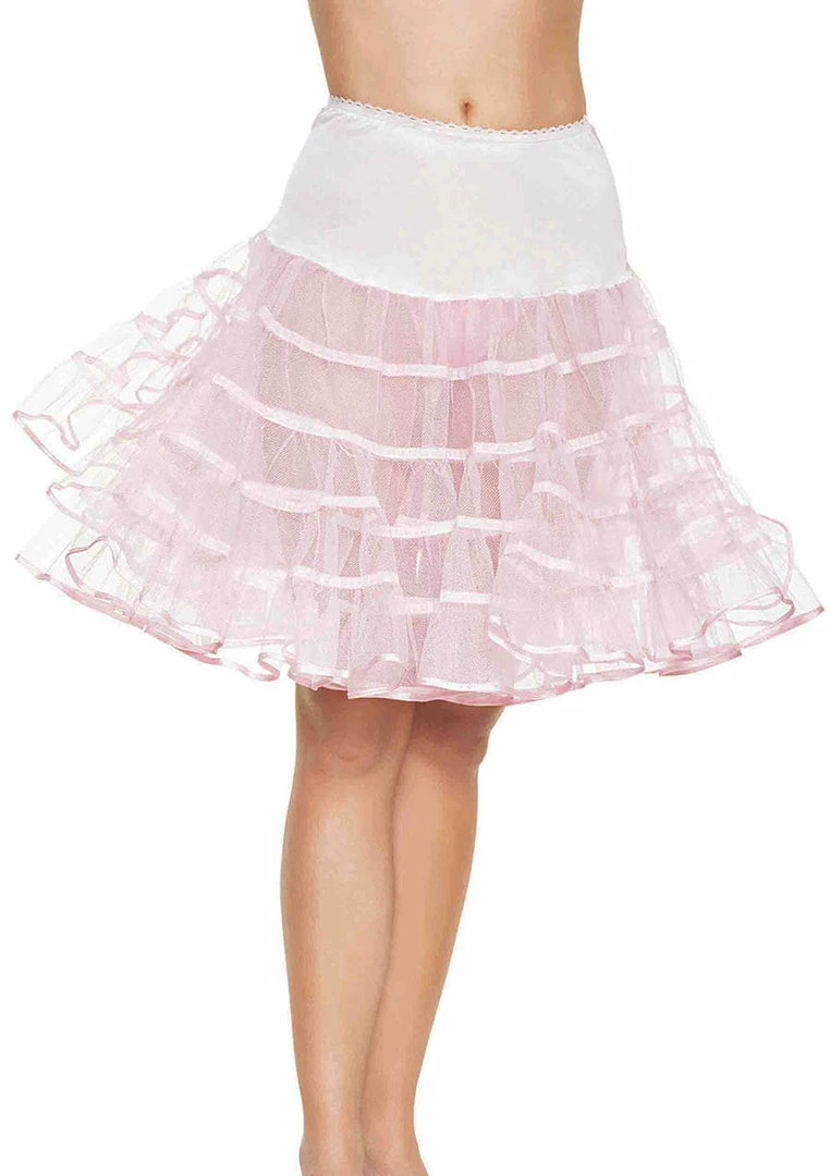 The Knee Length Pettiskirt is the perfect addition to any costume that you want to add fullness. The elastic waist fits most sizes and has a nylon tricot top with 5 rows of gathered netting. Perfect for 1950’s style poodle skirts, swing dresses and so many other costumes.