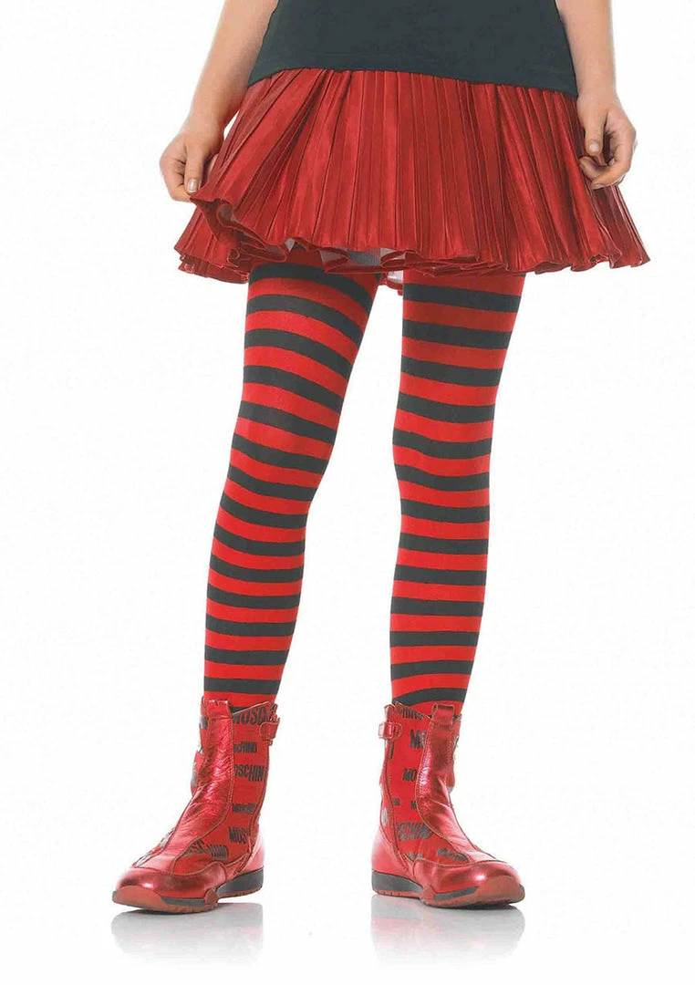The Nylon Striped Tights for children create a fun and festive look for many costumes. Available in different sizes and color stripes. These tights have a limited stretch so if your legs are long or fuller, consider the next size. Also available in adult sizes.