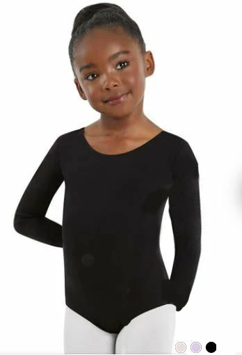 High-quality class basic features long sleeves, memory stretch front lining, and a ballet cut leg line.