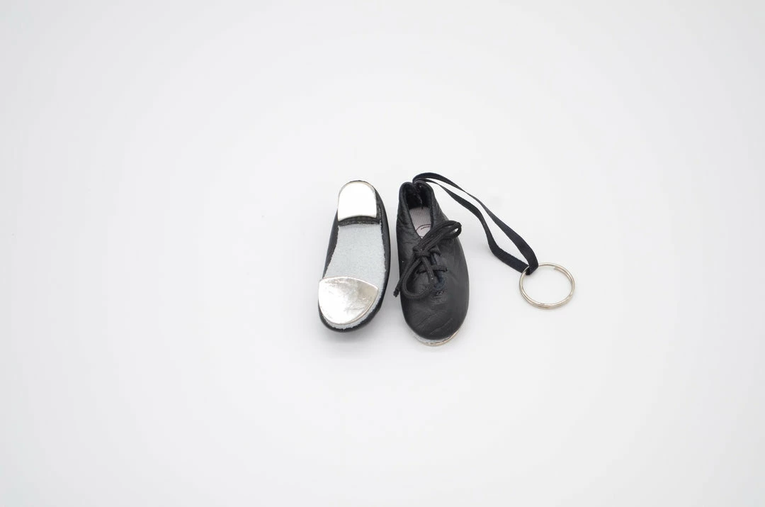 The Mini Jazz Tap keychain in pink has an authentic design and made with real leather, a suede sole and actual taps. The shoe measures 3″ and then the keychain attaches to ribbon (3″ long) has a one inch diameter. Hook it onto your dance bag, backpack, or keys to show off your love for dance! Makes a great gift for dancers of all ages!