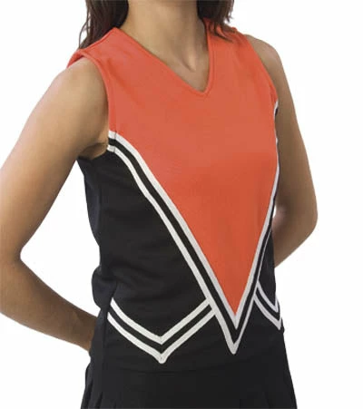 Deluxe quality trimmed cheer vest is made of a heavy weight polyester blend for durability during your most intense games. The vest looks great with the pleated cheer skirt and makes a realistic cheerleader costume. Some stock available in store but available by special order in additional colors, styles and sizes. Includes vest only. Skirt, liners, trunks, hairbows, socks and pom poms available separately. Be advised, this style runs very small and does not stretch.