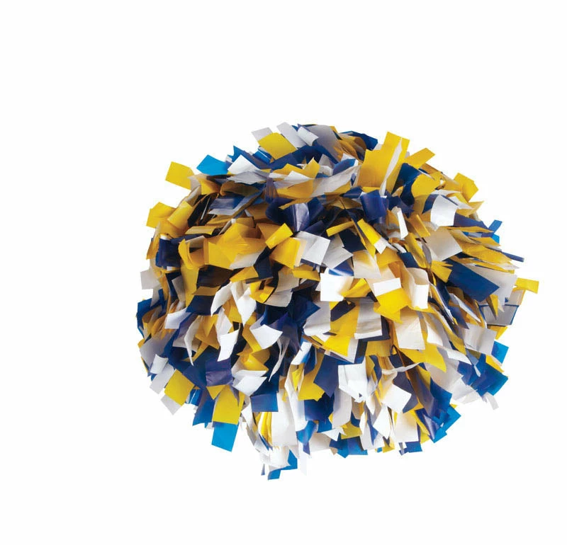The Deluxe Pom Poms are great quality real pom poms. The hidden handle is in the middle of the pom pom with 8″ strands on all sides. Low stock available in store but custom colors and larger quantities are available by special order. Send an email inquiry or ping us in the bottom corner. Colors can be solid, two-tone, or three-tone. Includes one pair.