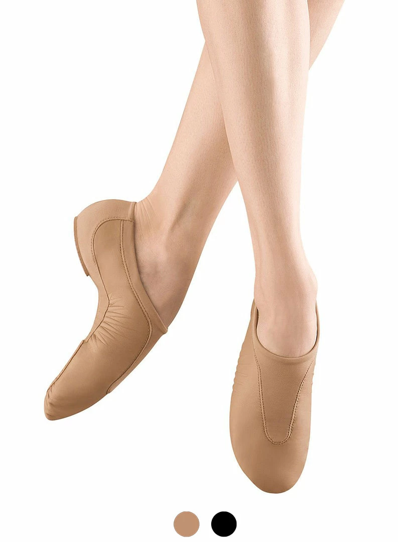 The perfect competition jazz shoe, the Pulse reflects the curve of the instep with a glove-like fit and low profile. It features an arch hugging neoprene stretch, satin arch, and soft leather upper. Embossed pleat detail accentuates the arch while the moldable suede front sole accentutates feel-the-floor action. Perfect for spinning and turning. New low profile heel to get closer-to-the-floor feeling and gives the dancer optimum control for stopping.