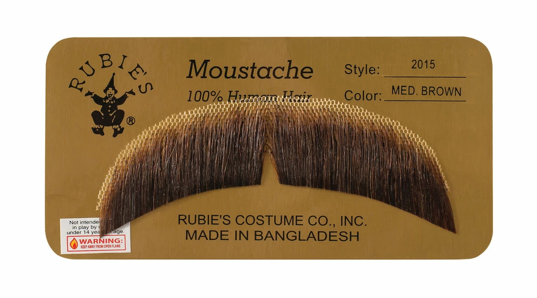 The Classic Character Moustache is a versatile all purpose style. It can be easily trimmed to the desired length. This style is made of human hair for the most realistic look and has a tulle backing to blend to the skin. The recommended application is spirit gum adhesive which available separately. Easily paint the spirit gum onto clean and dry skin, fan for 15-30 seconds, when it starts to get tacky then apply your mustache. Use spirit gum remover to remove any excess adhesive from your skin and the back of the mustache so it will be ready to reuse. If time or money are an issue then try the single strip double stick tape also available separately. Available in a variety of natural colors.