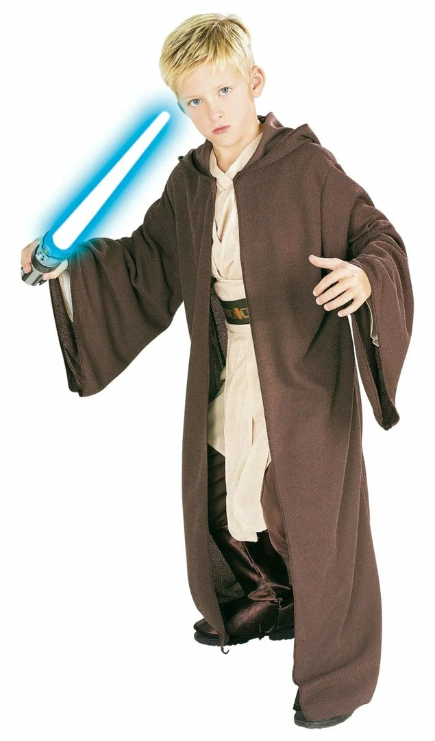 Finish off your Jedi costume with the deluxe quality brown waffle weave knit robe with hood, draped sleeves and an open front. Includes robe only, lightsaber and undercostume available separately.