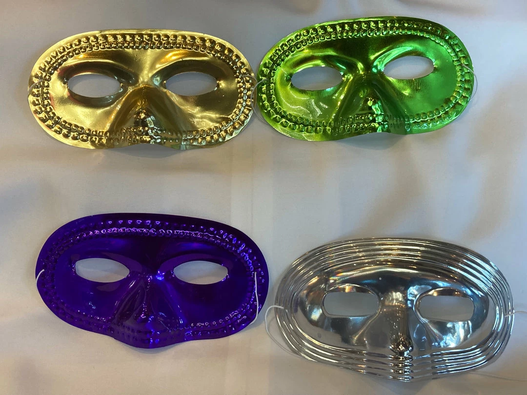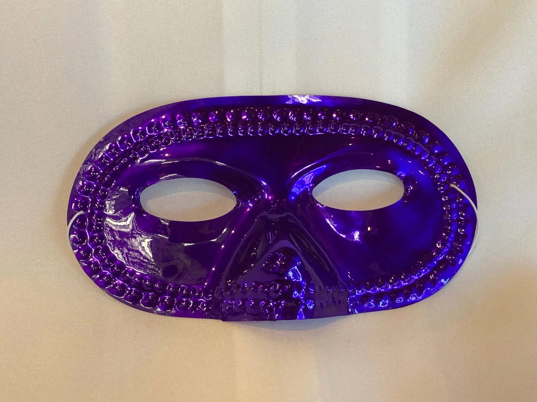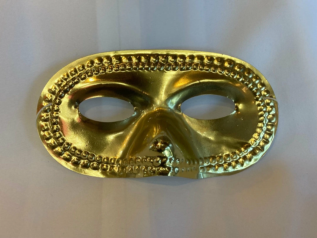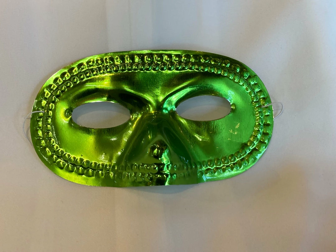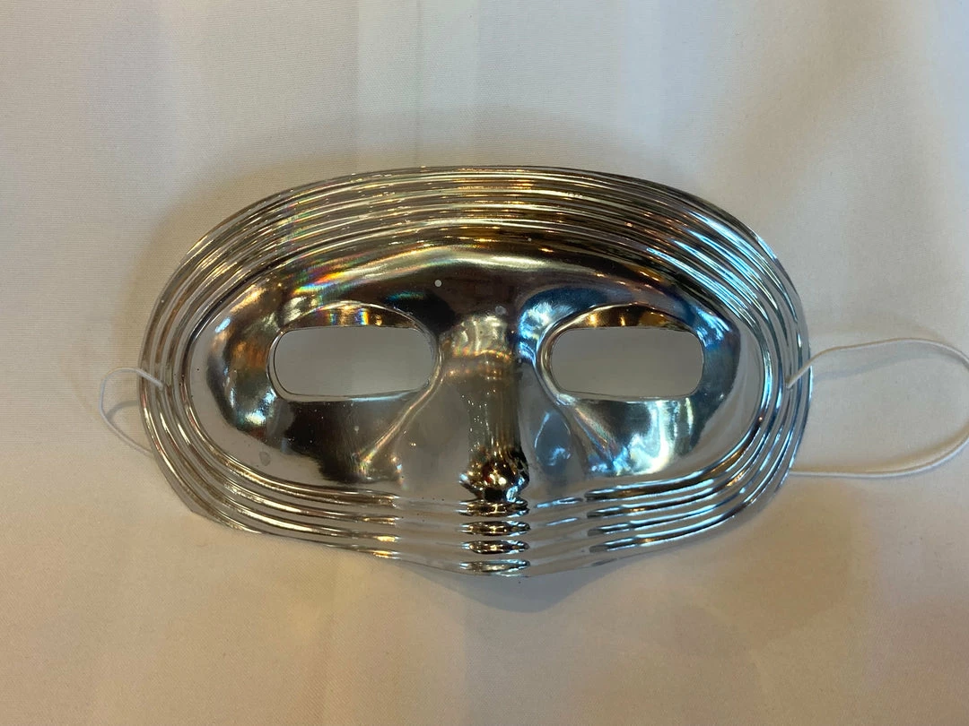 Economical and pliable lightweight metallic foil mask goes on with an elastic strap.