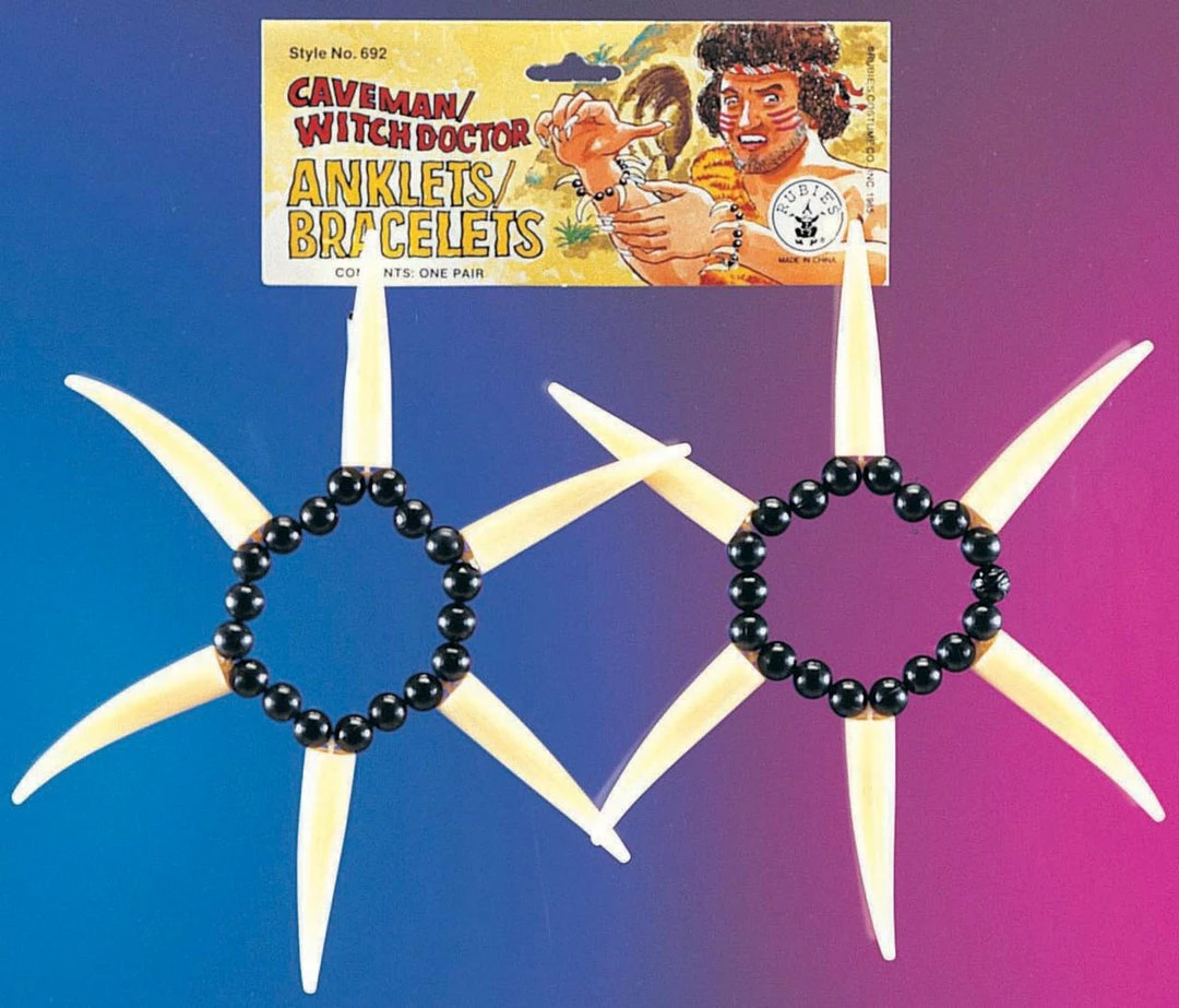 Travel back to the Stone Age with this prehistoric accessory. They can be used as a bracelet or an anklet. They have an elastic string with plastic beads and teeth. Includes two bands.